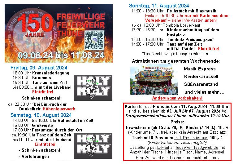 150 Jahre Freiwillige Feuerwehr Thune 9. - 11. August 2024