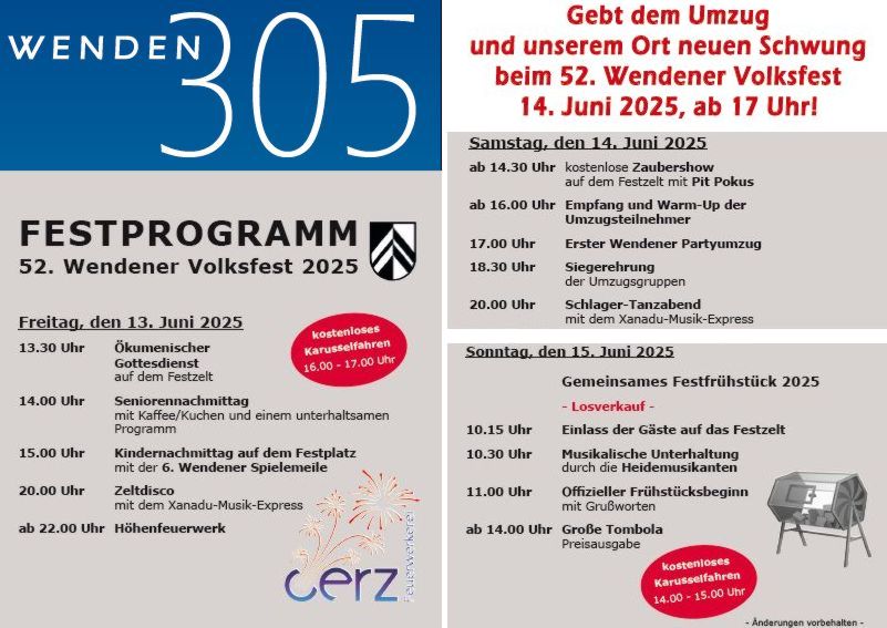 305 - das ist die Zauberzahl zum 52. Wendener Volksfest.