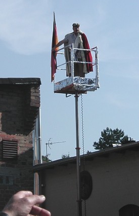 Er muß das wohl geahnt haben und nahm die Huldigung durch das Volk aus luftiger Höhe entgegen: